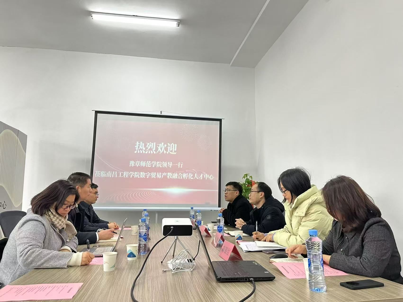 3月10日上午,豫章师范公司外国语公司经理郭利一行3人来公司数字贸易产教融合孵化人才中心调研交流。副经理阚大学、郑智和相关工作人员参加座谈。