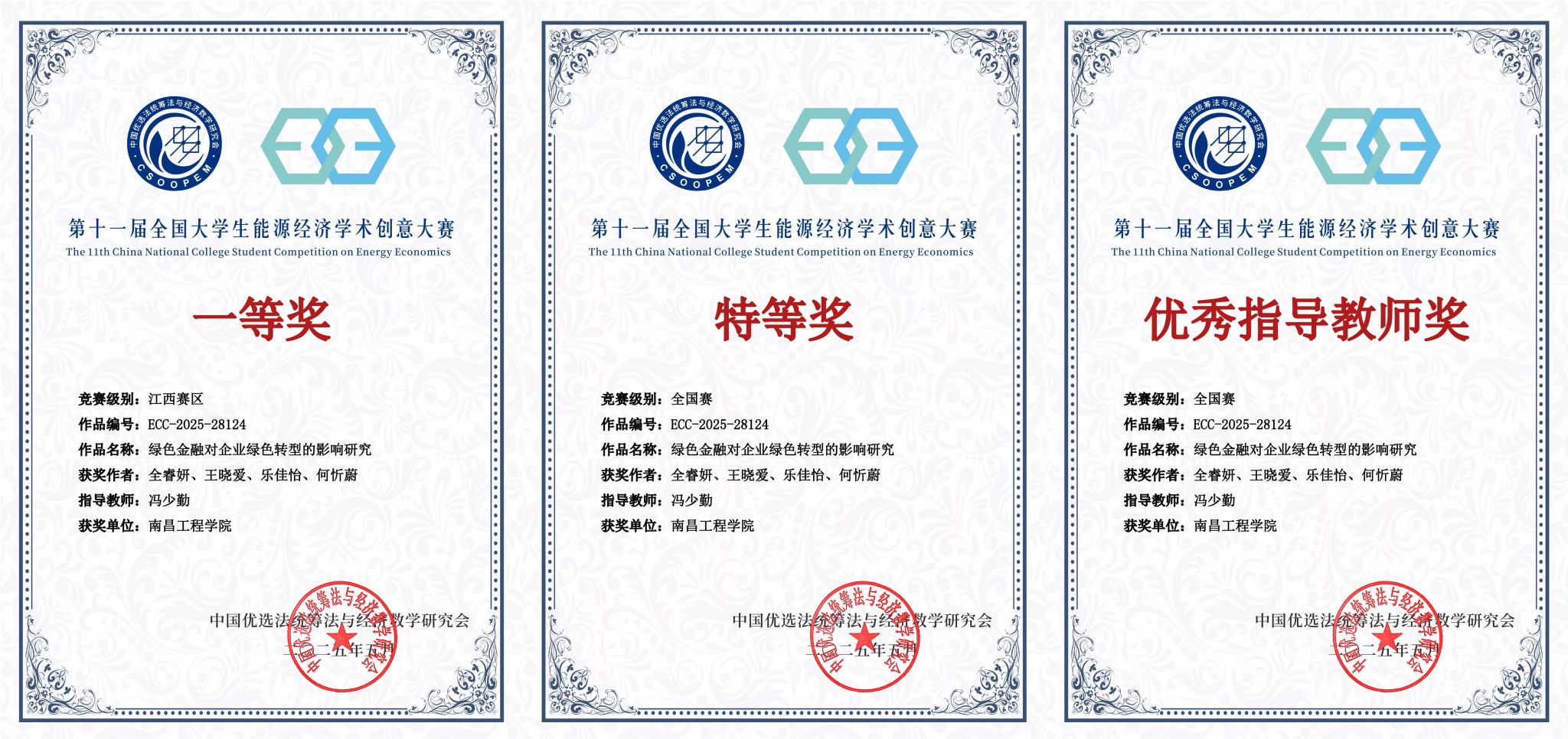 在这场激烈角逐中,公司学子表现亮眼,交出了一份令人瞩目的答卷。由冯少勤老师指导的2023级审计学本科生全睿妍、王晓爱及2024级审计学本科生乐佳怡、何忻薇4名同学共同完成的作品《绿色金融对企业绿色转型的影响研究》荣获全国总决赛老员工组特等奖。(文图/冯少勤 全睿妍 王晓爱)