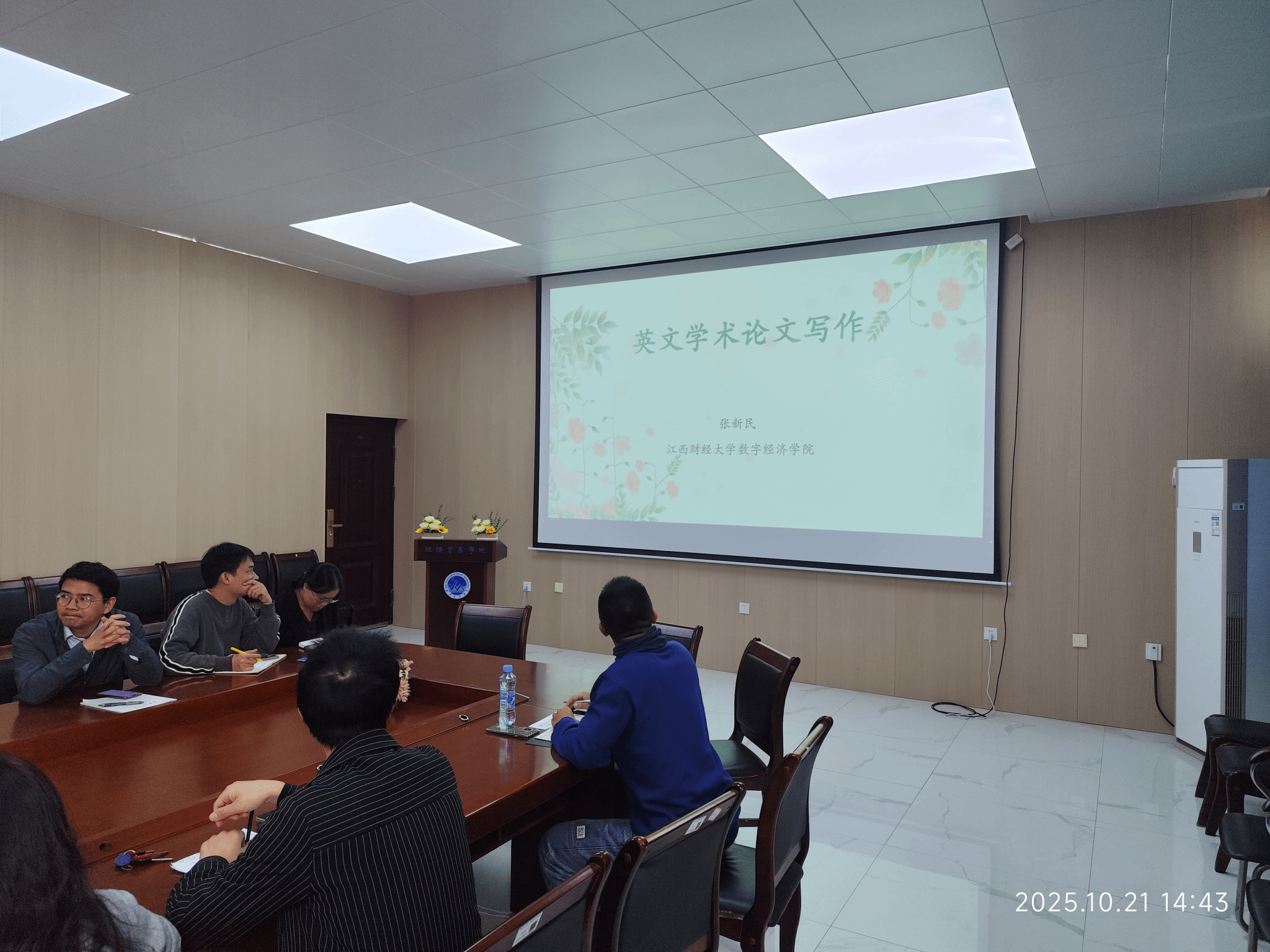 10月21日下午2:30,江西财经大学张新民博士受邀开展关于英文学术论文写作的辅导报告,报告由水经济与管理研究中心专职副主任李学荣主持,公司全体博士参与了报告。