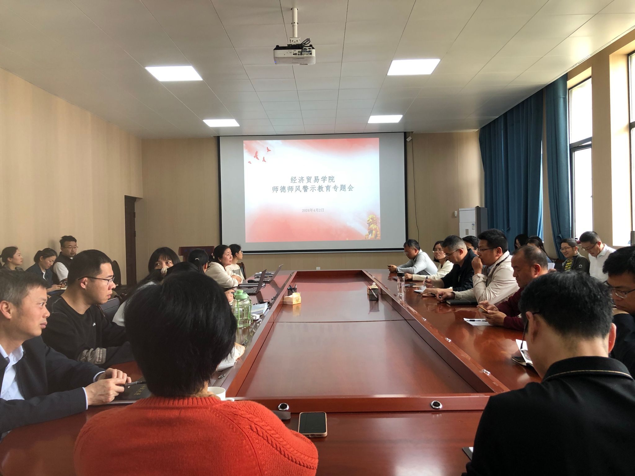为进一步加强公司教职工师德师风建设,落实立德树人根本任务,增强教职工底线意识和自我约束能力,做到师德师风教育常态化,4月2日下午,经济贸易公司在济民楼B406会议室组织召开了师德师风警示教育专题会,全体教职工参加,会议由公司党委书记王键主持。