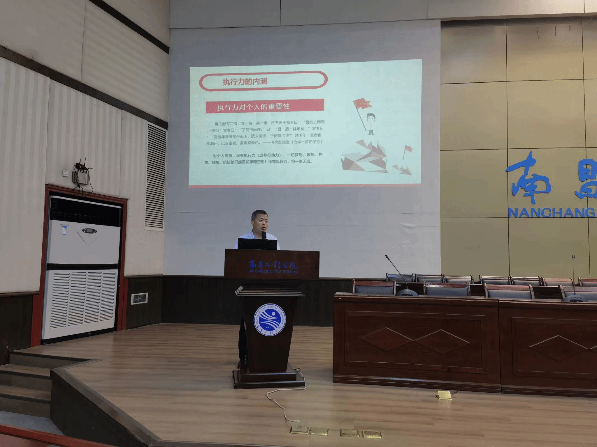 开班仪式在庄严肃穆的国歌声中拉开了序幕。公司员工工作负责人以《如何提升团学干部执行力提升》为题进行了首场理论培训,他从执行力的内涵、执行力缺失原因、怎样提升执行力和执行力理念四个方面进行了讲解,要求全院青年骨干要认真学习贯彻习近平总书记在纪念五四运动100周年大会上重要讲话精神,提高执行力,认真完成好各项任务,成为理想坚定、品学兼优、工作能力突出的青年骨干。