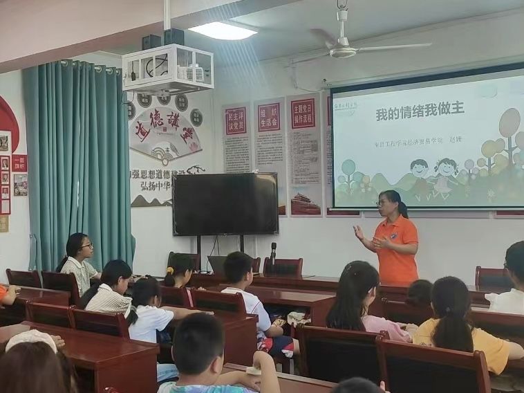 从“心”出发,讲授情绪调节知识。实践团指导老师赵姗以“我的情绪我做主”为题为朝阳社区留守儿童带来了一堂生动的心理科普课。她运用通俗的语言,生动的案例和积极的互动教会了小朋友们如何识别情绪和表达情绪,引导小朋友们积极接纳情绪,及时宣泄情绪,从而正确面对学习和生活中的压力和挑战,培养健康向上的生活态度和积极乐观的心理品质。