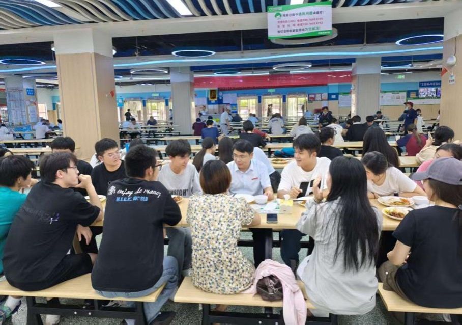 “食堂饭菜合口味吗?”“学习压力大不大?”……中午时分,周仲魁来到沁园食堂与同学们共同就餐,他亲切询问同学们对餐饮质量、价格口味以及日常学习生活的看法,并鼓励同学们要充分利用好业余时间,多学知识,多参加活动,增强自己的本领和才干。