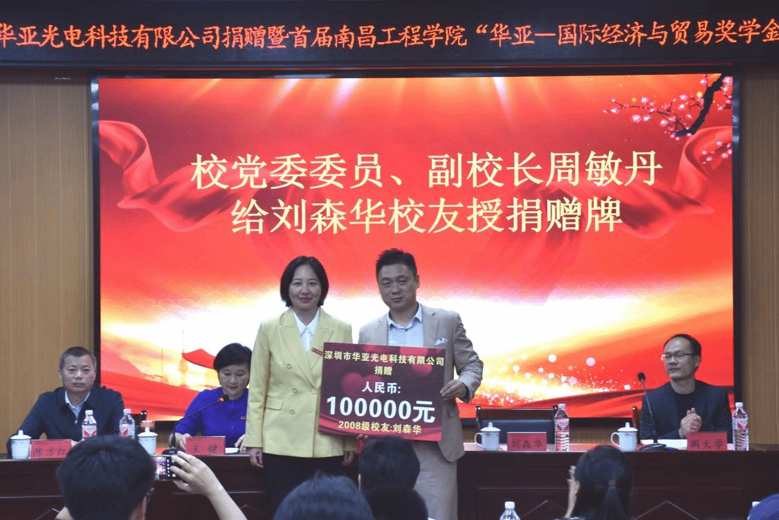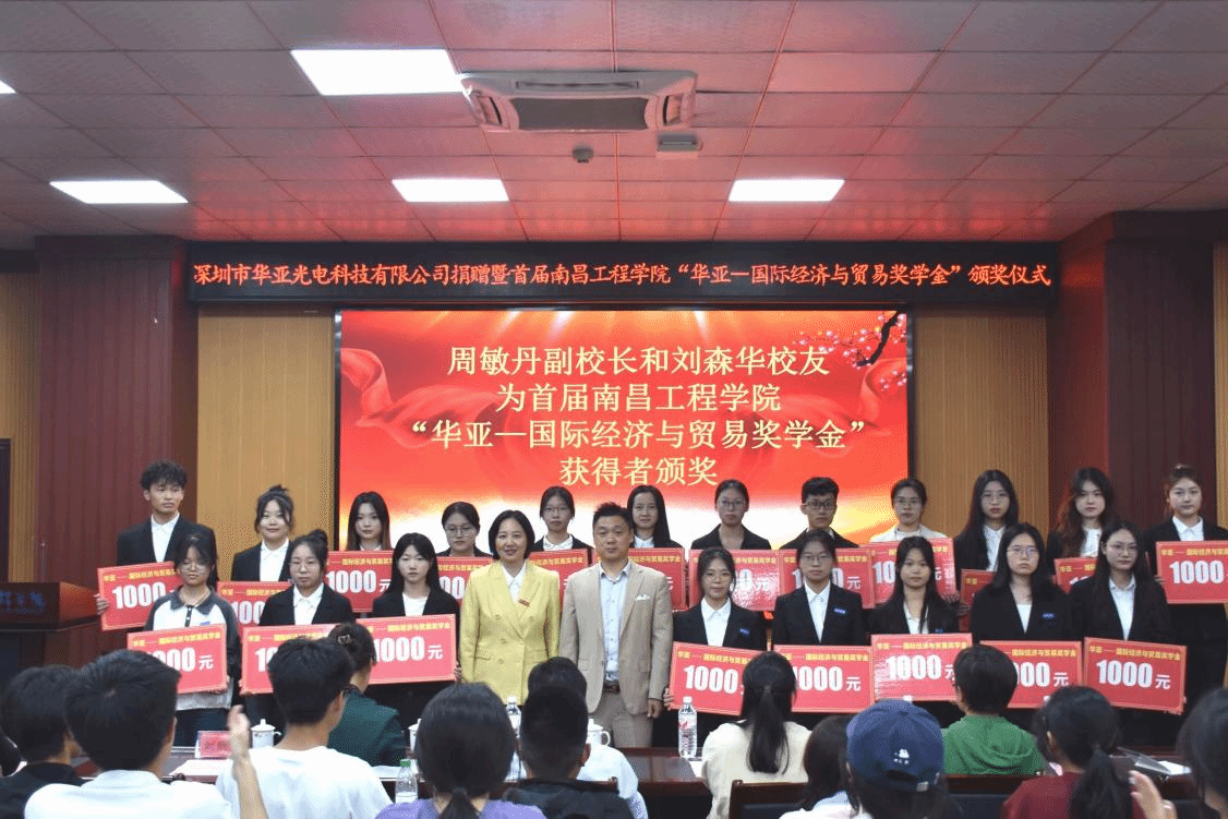 随后,周敏丹与员工刘森华共同为首届南昌工程公司“华亚——国际经济与贸易奖学金”获得者颁奖。